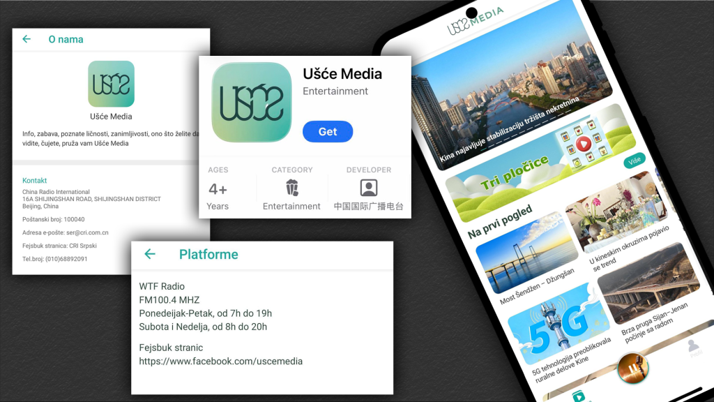 U kontakt-podacima navedena je stranica China Radio Internationala (CRI) na srpskom jeziku, dok se u sekciji „Platforme” pominju isključivo WTF radio i Fejsbuk stranica „Ušće Media”, koju je kompanija Meta označila kao „medij pod kontrolom države Kine”.