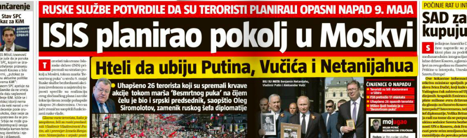 Iako je ova činjenica dovoljno zabrinjavajuća, Informer nije mogao da propusti da „doda“ da je saopšteno da je meta napada bio i Vučić. Siromolotov u intervjuu, međutim, nije pominjao imena niti je tvrdio da je znao ko je meta napada. U intervjuu nije kazao ni da iza ovih planiranih napada stoji ISIS.