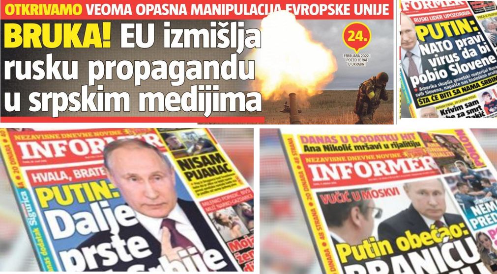 Tabloid dalje navodi da su na spisku „ruskih propagandista” portali poput Informera, Pinka, Večernjih novosti, a kao „ključni dokaz za optužbe objavljeni su tekstovi od pre tri godine”.