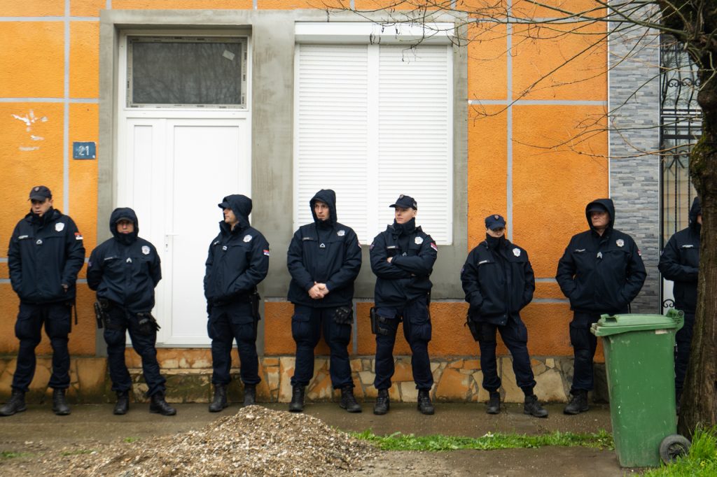 U Bajinoj Bašti maskirani muškarci zaletali su se čak i na policiju, koja ih je potom potisnula u prostorije iz kojih su kasnije izašli bez privođenja, iako je na tom mestu prethodno napadnuto više građana i novinara.