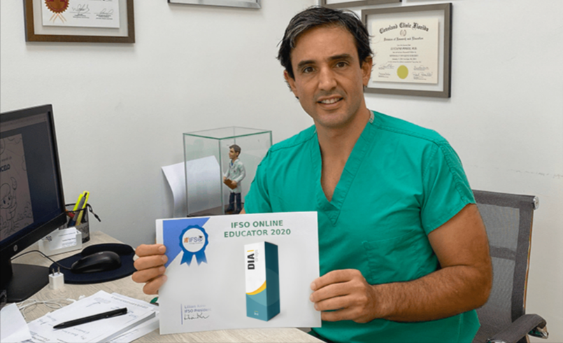 I fotografija na kojoj doktor Jovanović drži navodno priznanje o Dia Drops kapima zapravo je montirana. Google pretragom smo na sajtu Clinica Anglo Americana pronašli originalnu fotografiju Luciana Poggia sa priznanjem.