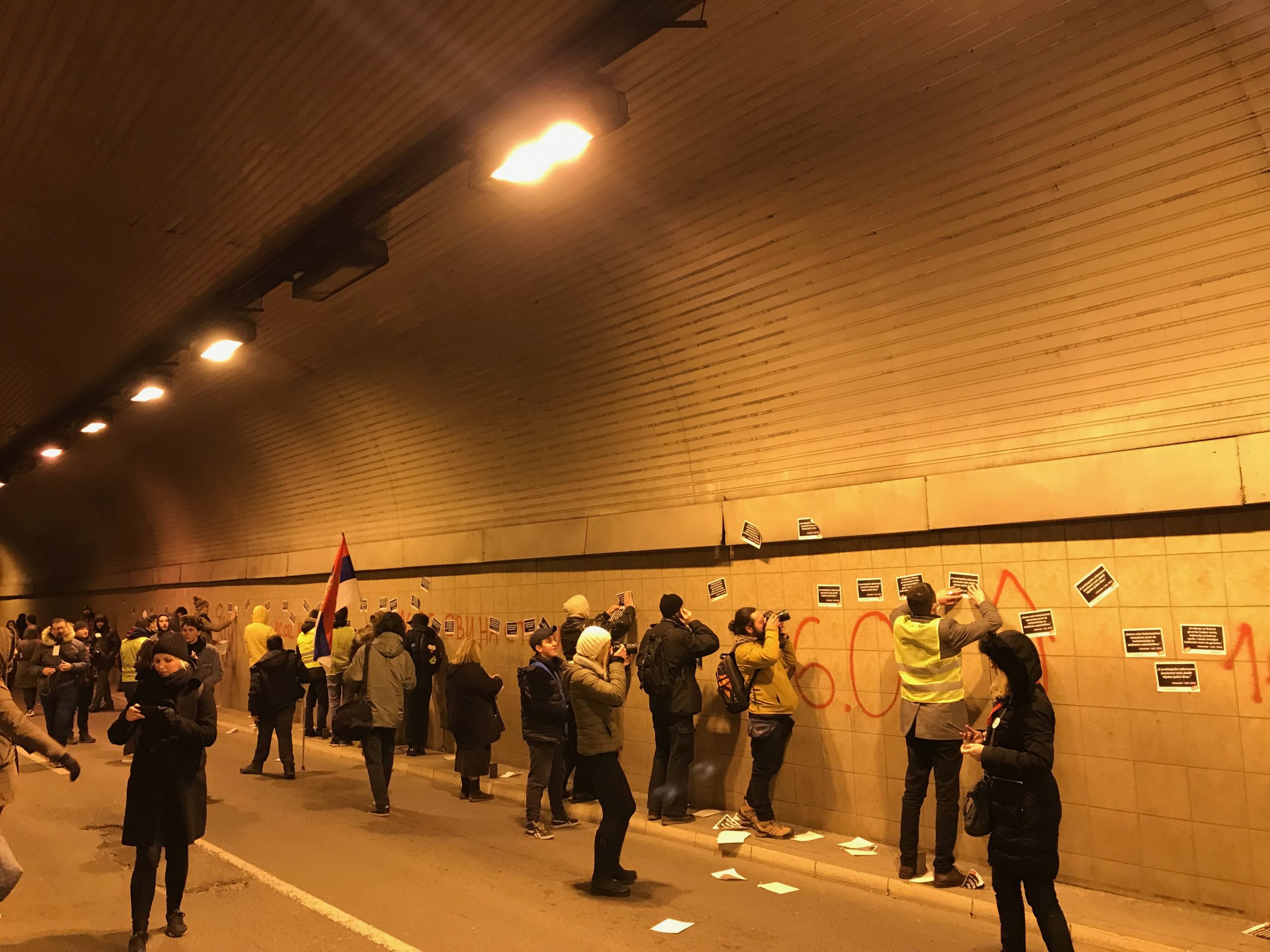 While workers tried to clean up the Terazije tunnel in the centre of Belgrade by pulling down the posters left behind by tonight's #1od5miliona protesters, some of the demonstrators chased them out. pic.twitter.com/WgxFNQhs7Z