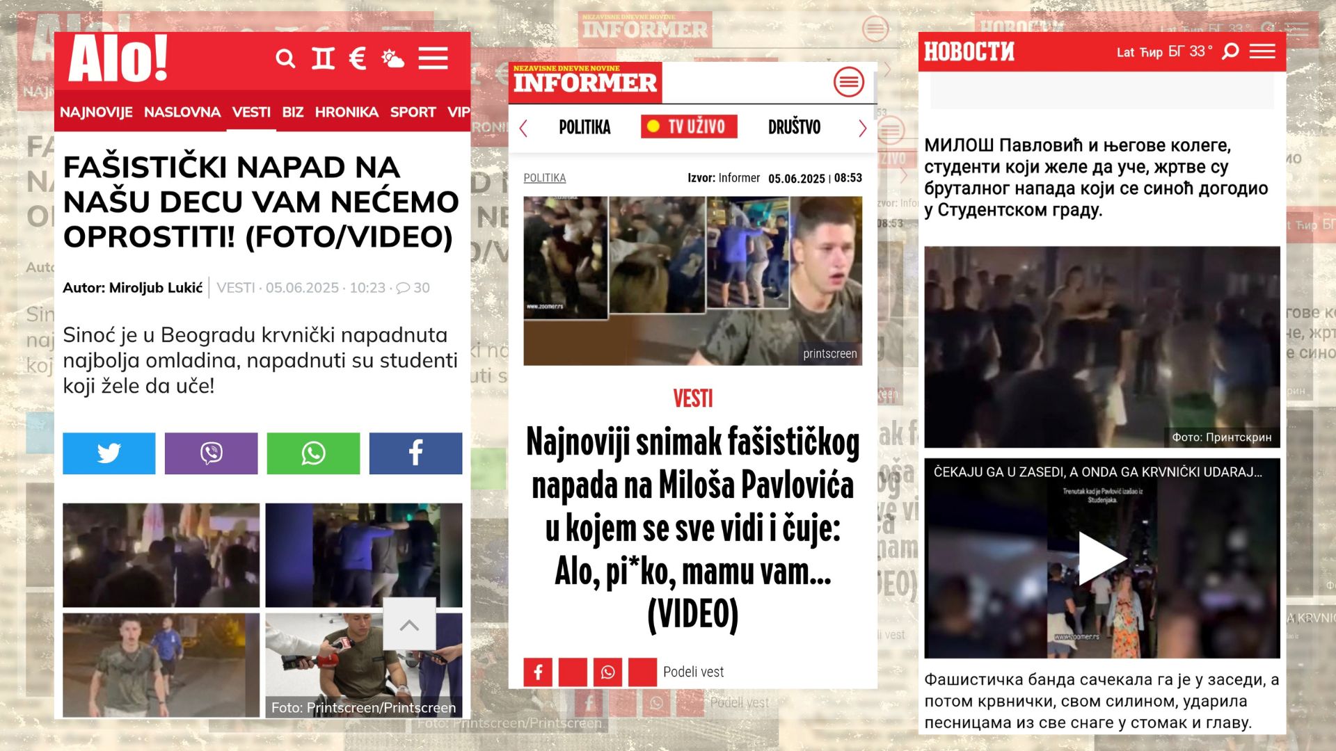 „Deca su zatrovana blokaderskim nasiljem, do sada je bilo urlanje, blokiranje, zaustavljanje svega, sada je to prešlo na jedan novi nivo – fizički progon i linč”, navodi provladin tabloid Informer.