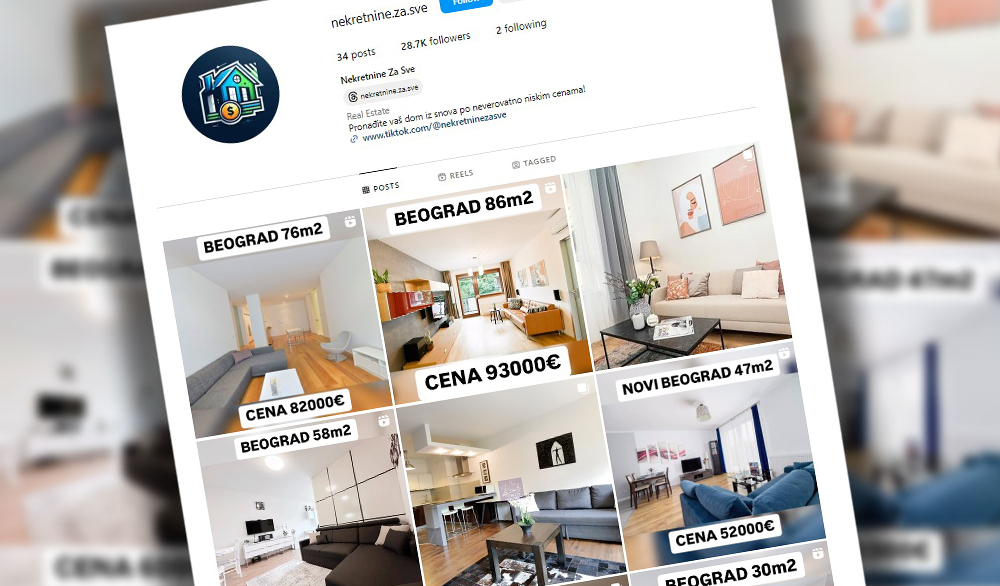 „Pronađite vaš dom iz snova po neverovatno niskim cenama”, stoji u opisu naloga Nekretnine za sve.