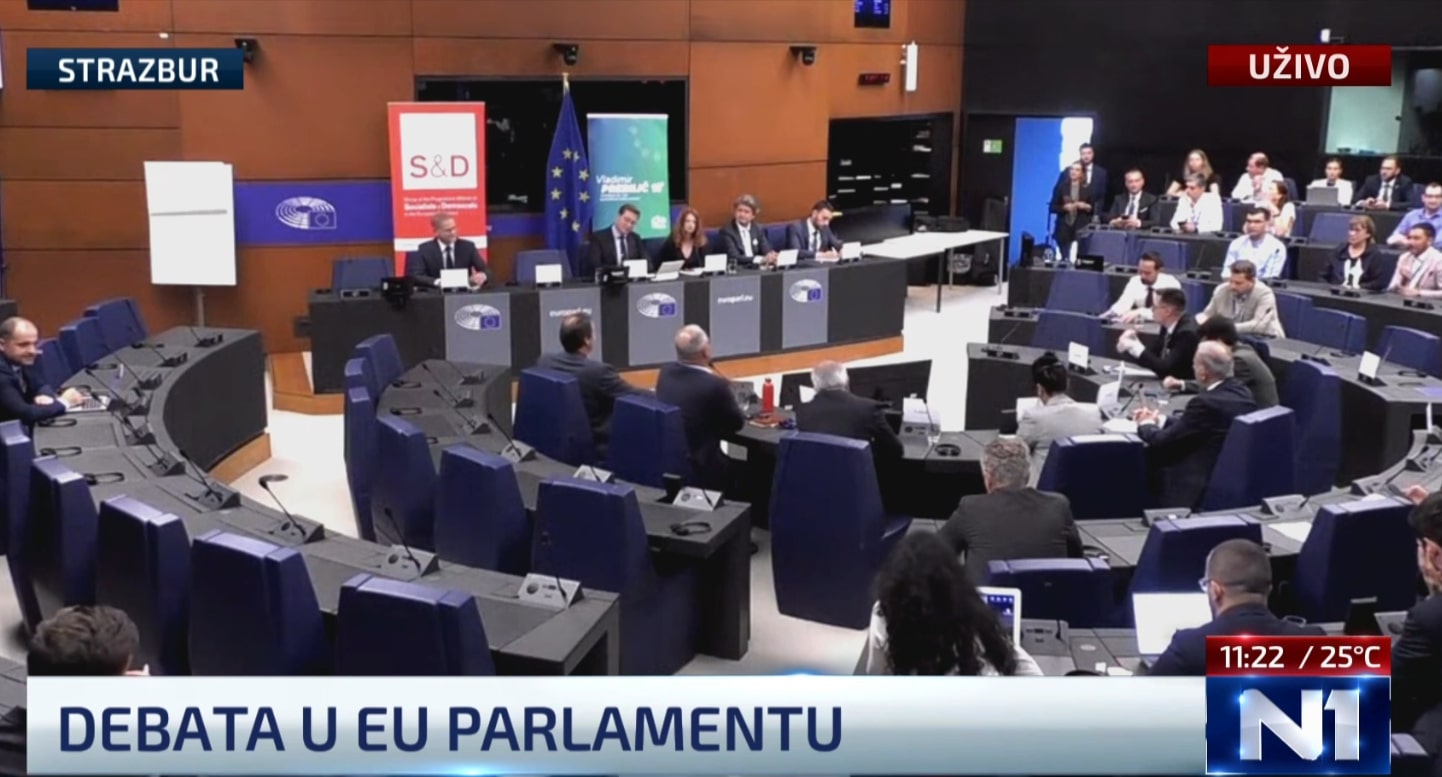 Evroparlamentarcima se obratio i Borko Stefanović iz Stranke slobode i pravde. On se u svom izlaganju dotakao vanrednih parlamentarnih izbora koje studenti u blokadi i građani već mesecima traže.