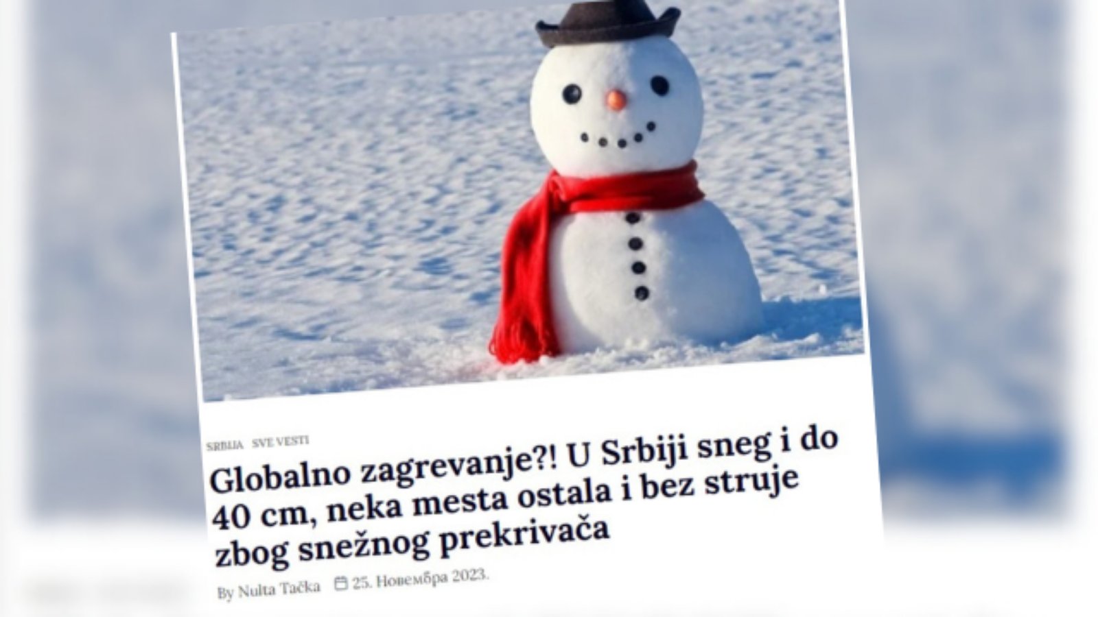 Sudeći po tonu teksta, Nulta tačka dovodi u pitanje globalno zagrevanje jer je u Srbiji pao sneg.