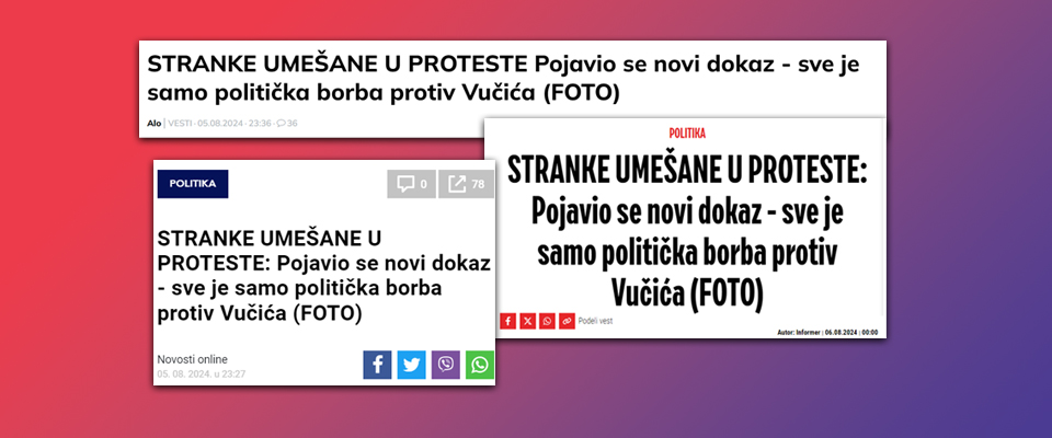 Portali tvrde da se na fotografijama sa Instagram profila stranke Zajedno, koje su priložili u tekstovima, vidi da ova stranka „sponzoriše proteste”.